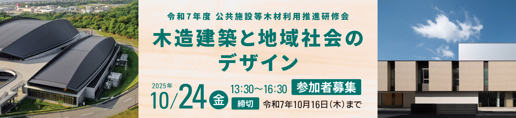 当研修会では、無垢製材にこだわり、中大規模建築の木造化を進められた講師を招聘し、公共建築物などの木造化への取り組みを通じて、地域の森林資源の活用、地域の木材加工業と木造建築業のありようなどを、「木造建築と地域社会のデザイン」をテーマとして、協議します。